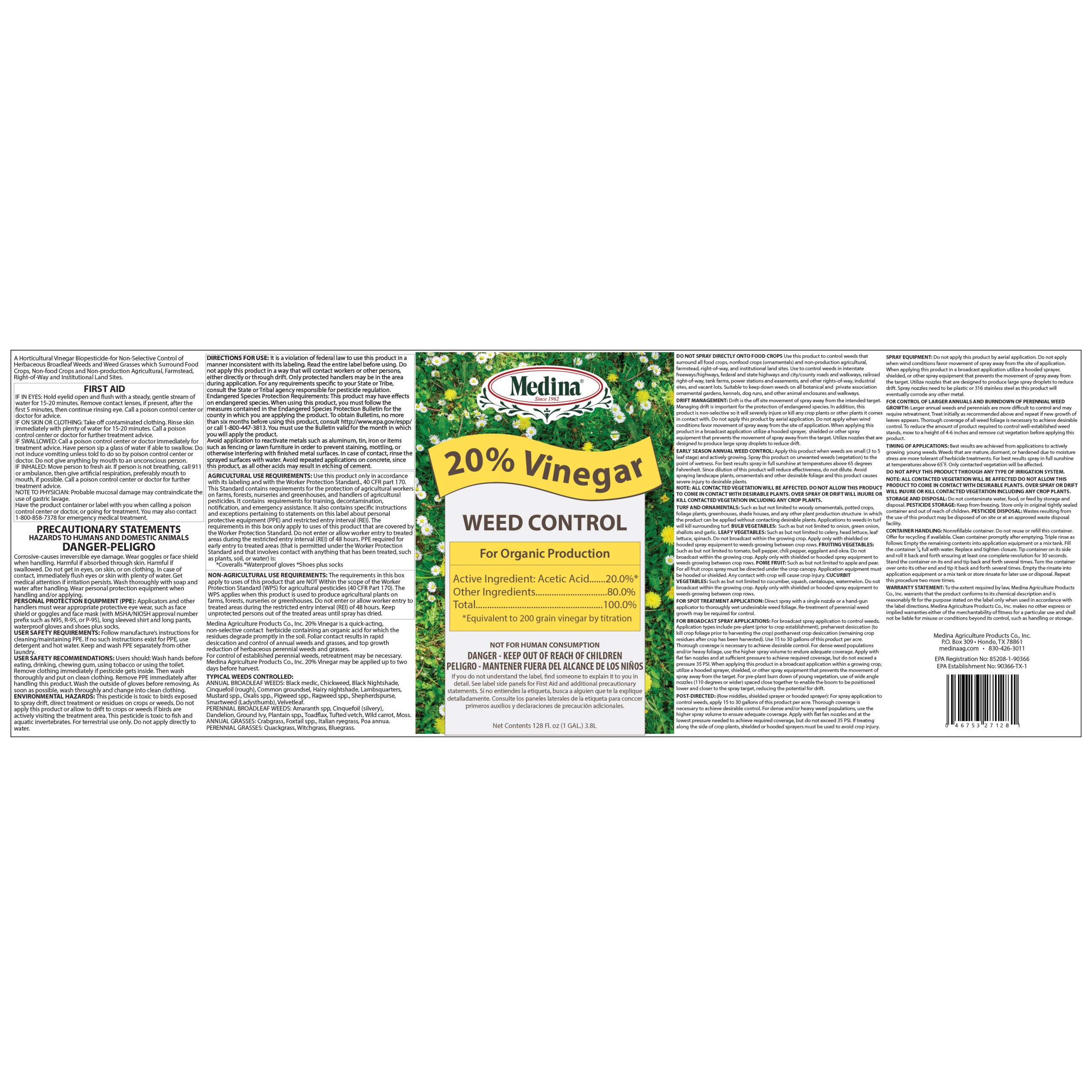 Q: What is Medina 20% Vinegar Weed Control?